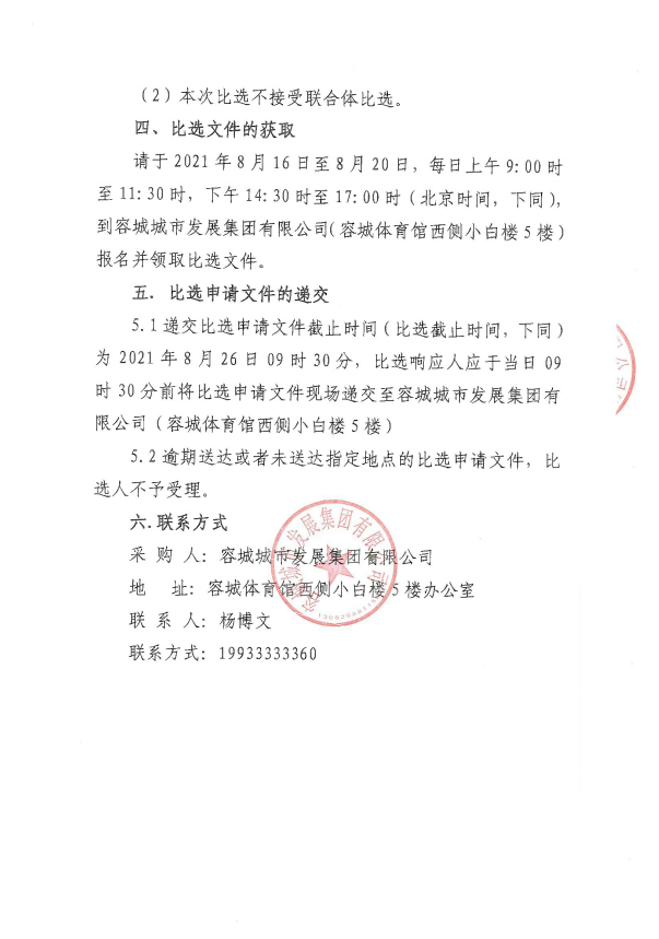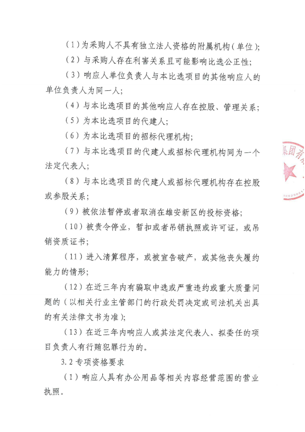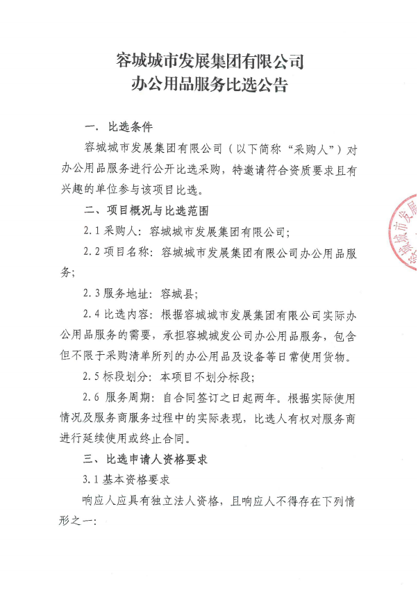 容城城市发展集团有限公司办公用品服务比选公告