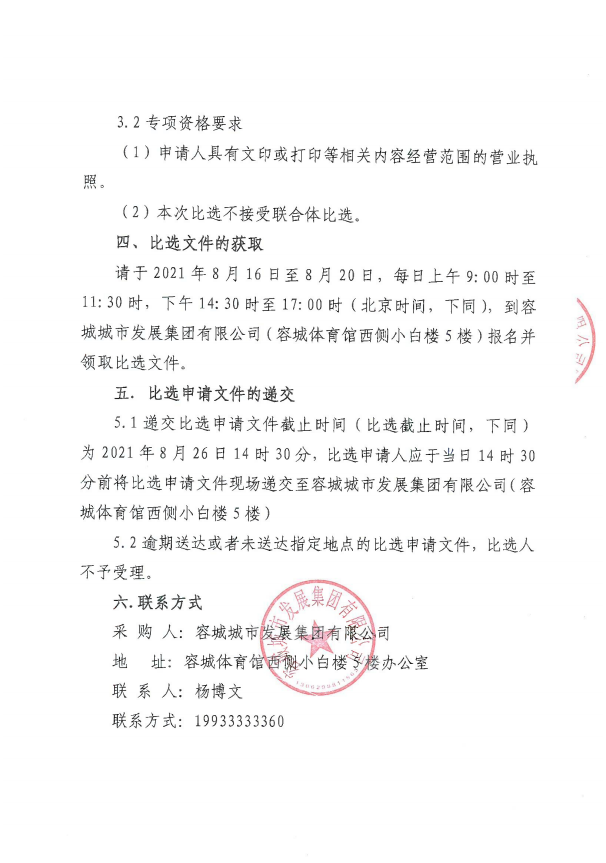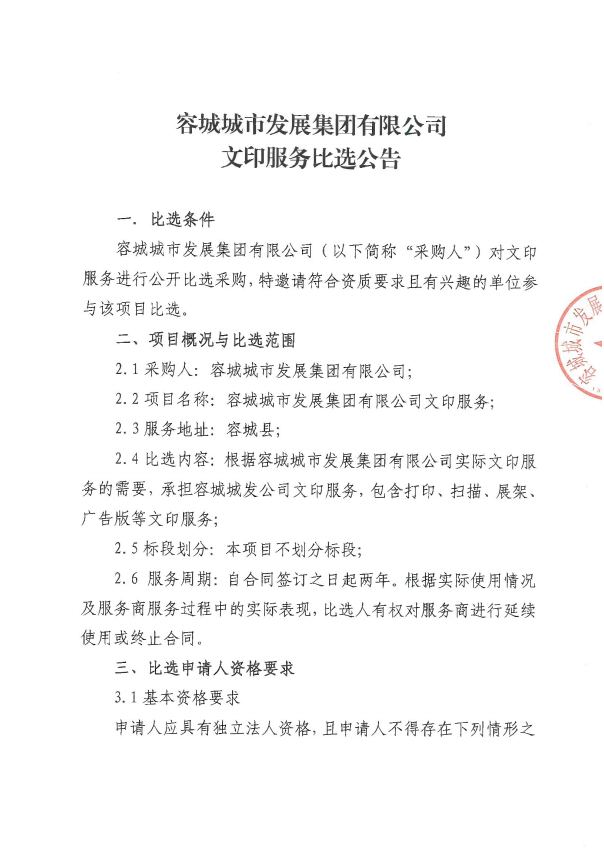 容城城市发展集团有限公司文印服务比选公告